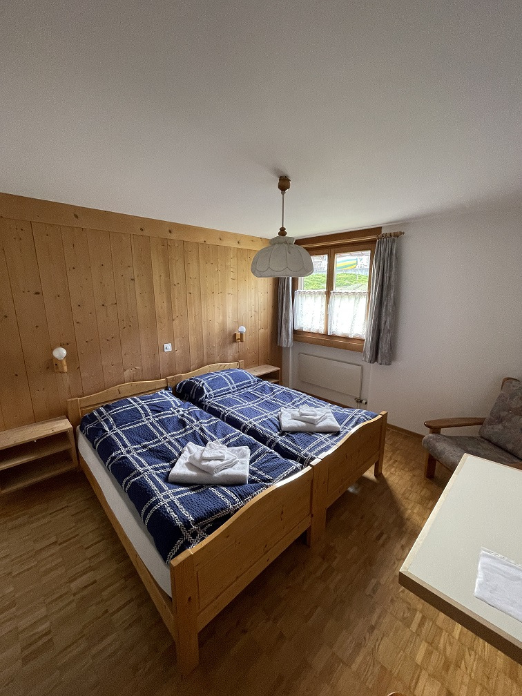 Doppel- oder Zweibettzimmer153 CHF / 2 Personen2 Einzelbetten, Zimmer 15 m², Bergblick, Terrasse, kostenfreies WLAN, Flachbild-TV, Satellitenempfang,