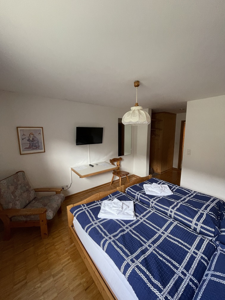 Doppel- oder Zweibettzimmer153 CHF / 2 Personen2 Einzelbetten, Zimmer 15 m², Bergblick, Terrasse, kostenfreies WLAN, Flachbild-TV, Satellitenempfang,