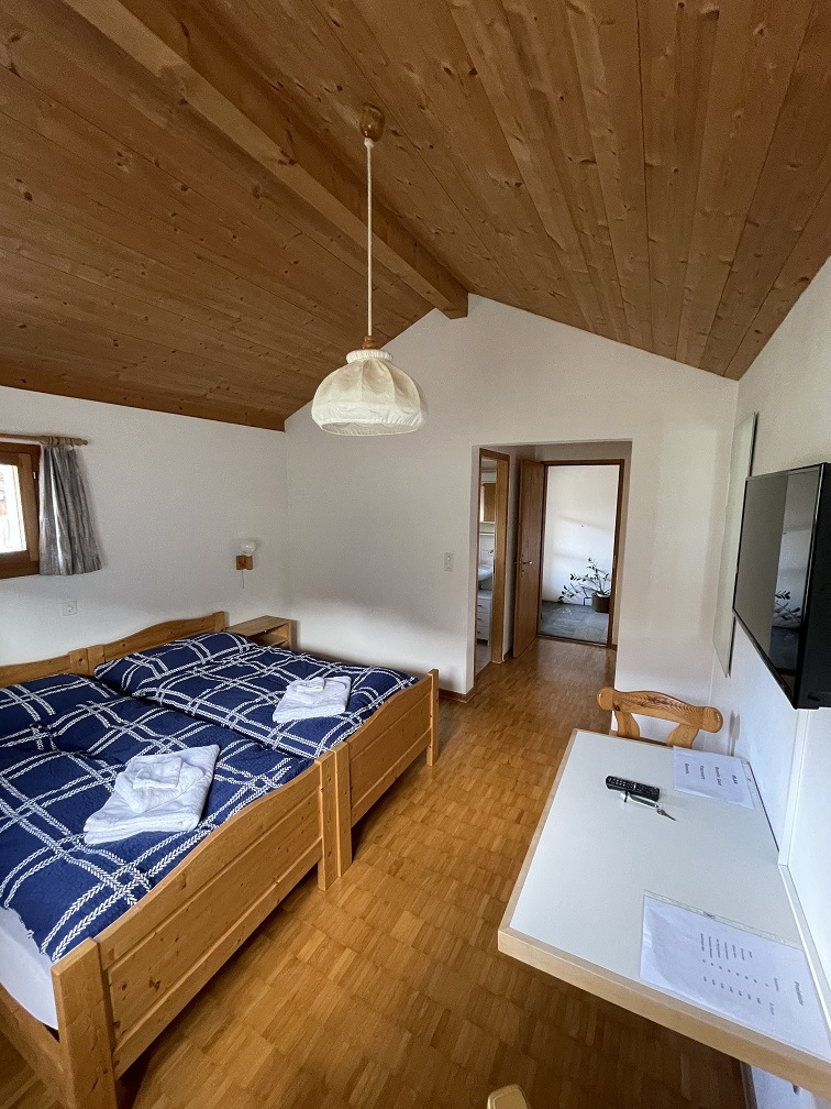 Doppel- oder Zweibettzimmer153 CHF / 2 Personen2 Einzelbetten, Zimmer 15 m², Bergblick, Terrasse, kostenfreies WLAN, Flachbild-TV, Satellitenempfang,
